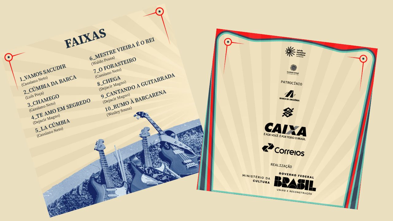 O disco abre com uma guitarrada raiz: “Vamos Sacudir!”, convidando o ouvinte para o baile. Em seguida, mergulha em levadas de merengue e cúmbia, mostrando como a guitarra paraense sabe dialogar com a latinidade. O brega aparece como marca afetiva e popular, enquanto o carimbó reafirma a identidade amazônica que atravessa toda a obra.