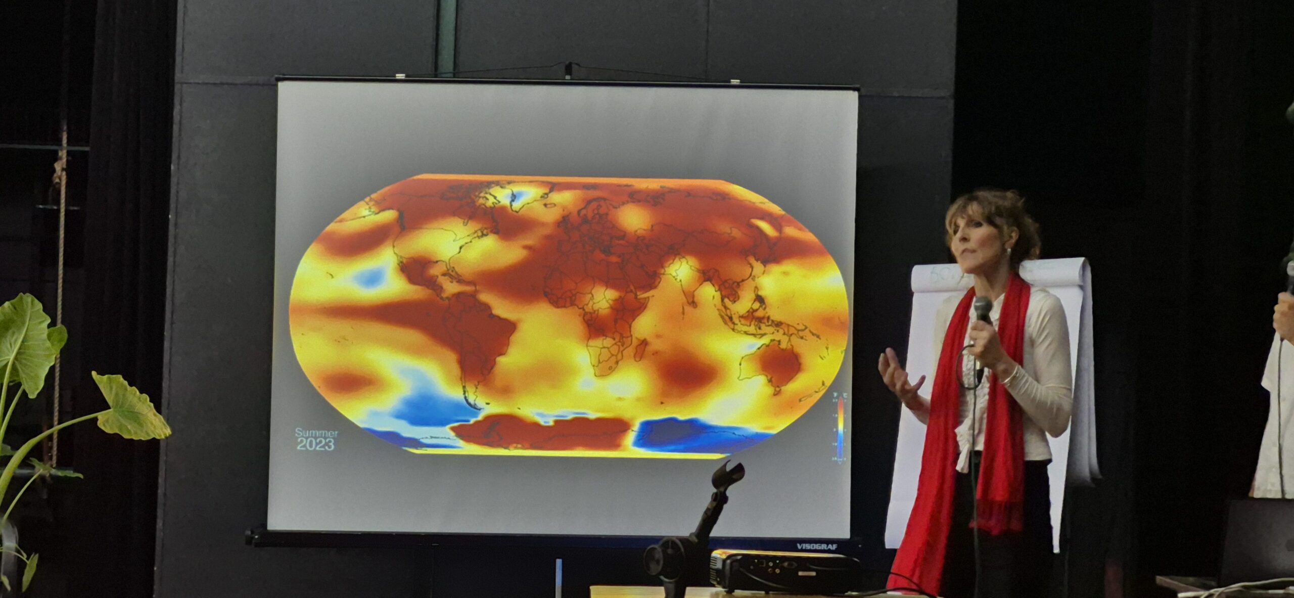 A apresentação de Alison Tickell, fundadora e diretora da Julie’s Bicycle, foi impactante. Especialista em políticas culturais para o clima, Alison trouxe uma análise precisa e crítica sobre os avanços e desafios da cultura nas COPs. Ela destacou que, até 2021, na COP 26, de Glasgow, a cultura nunca havia sido olhada como estratégia no combate à crise climática.